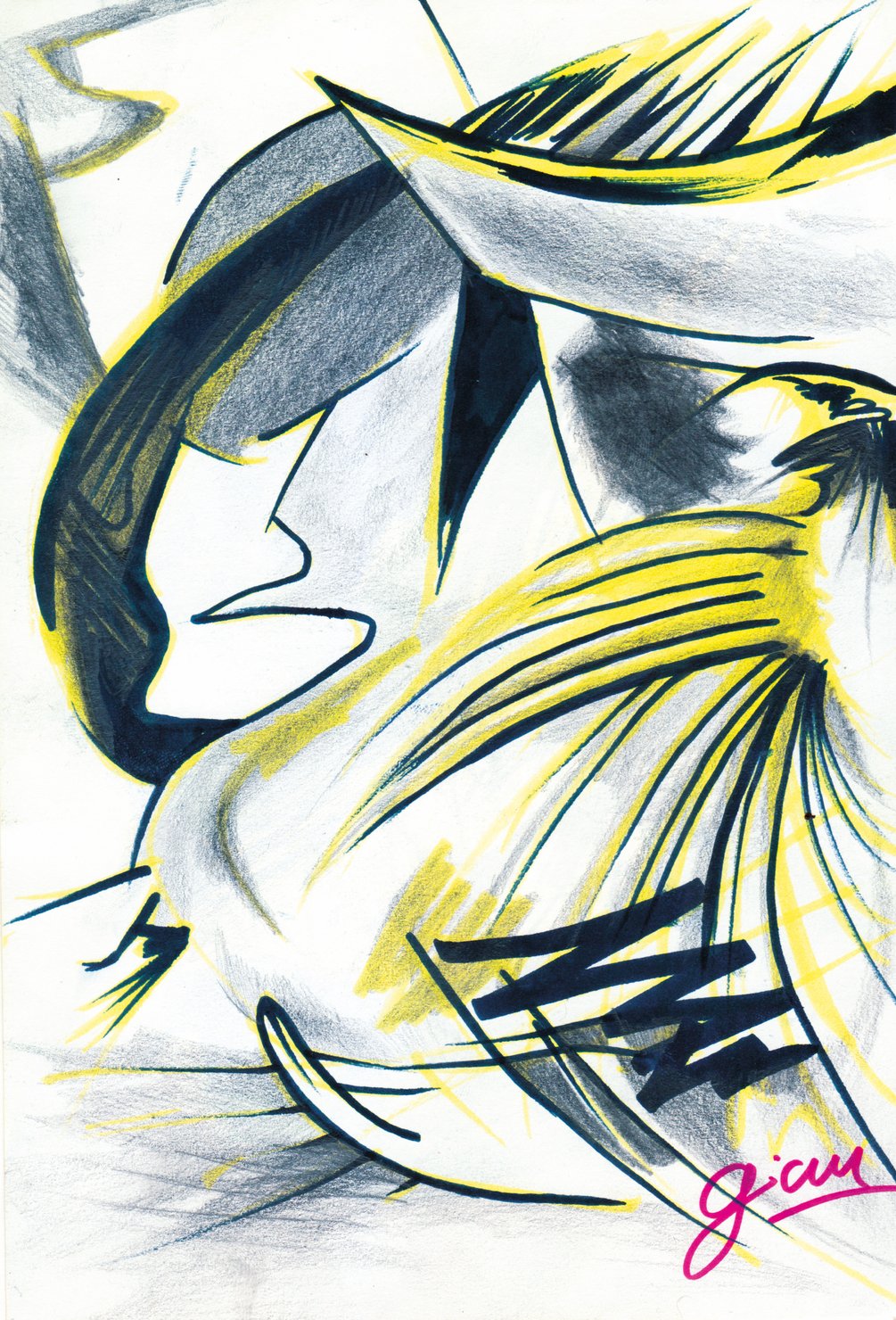 Each Piece of Art-Black Gold- Alcohol Markers and Graphite Art on Sheet 21,4x14 cm
